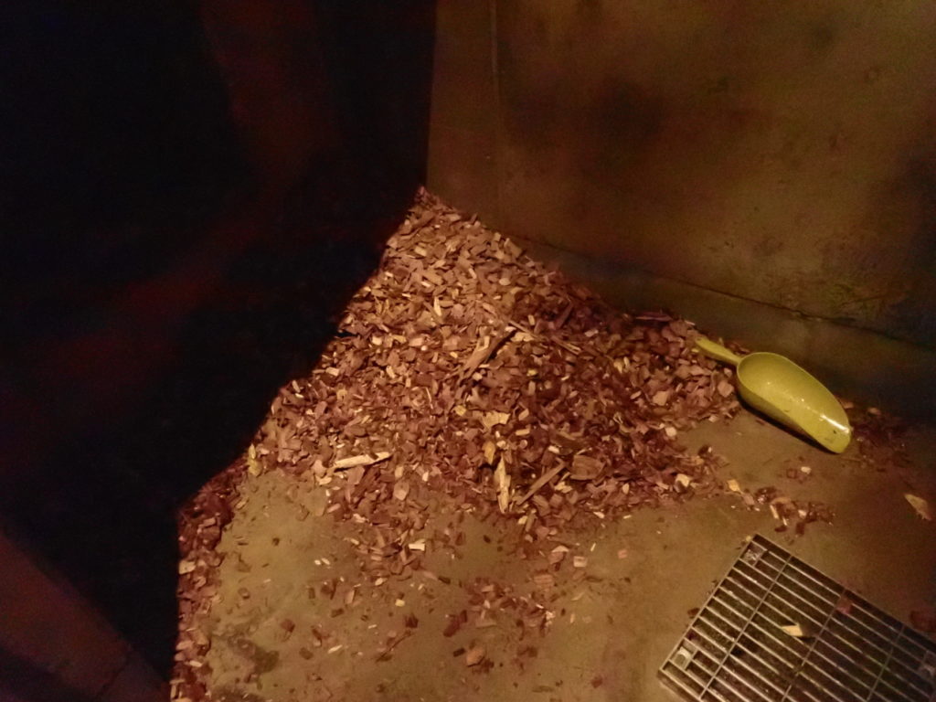 モモがかきだした産室のウッドチップも