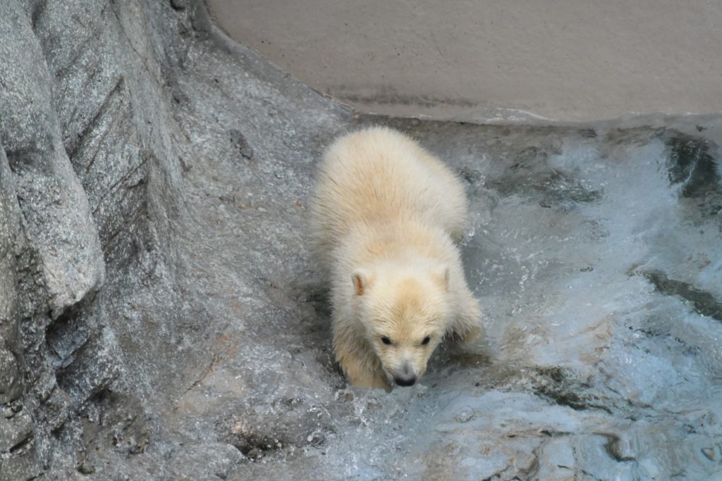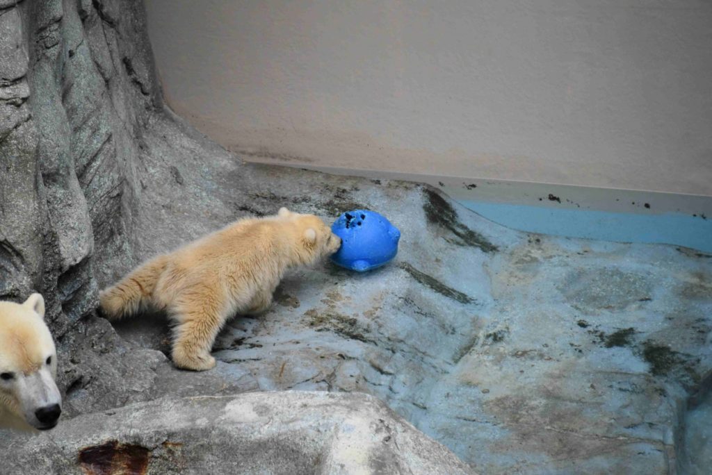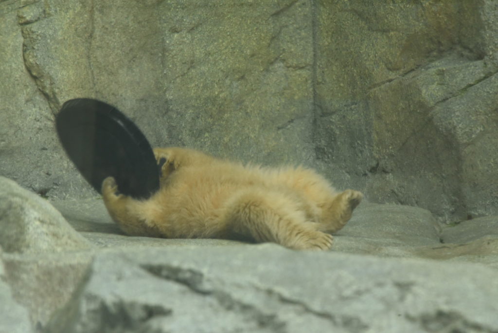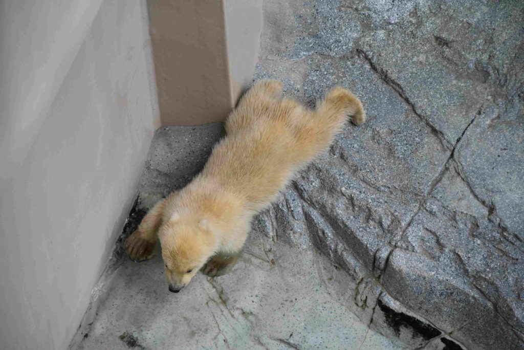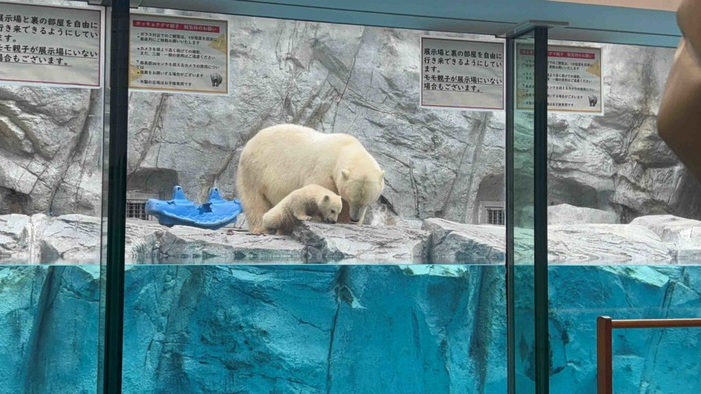 ホッキョクグマモモ親子の展示場の前にはおだやかな雰囲気が