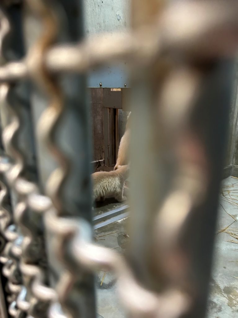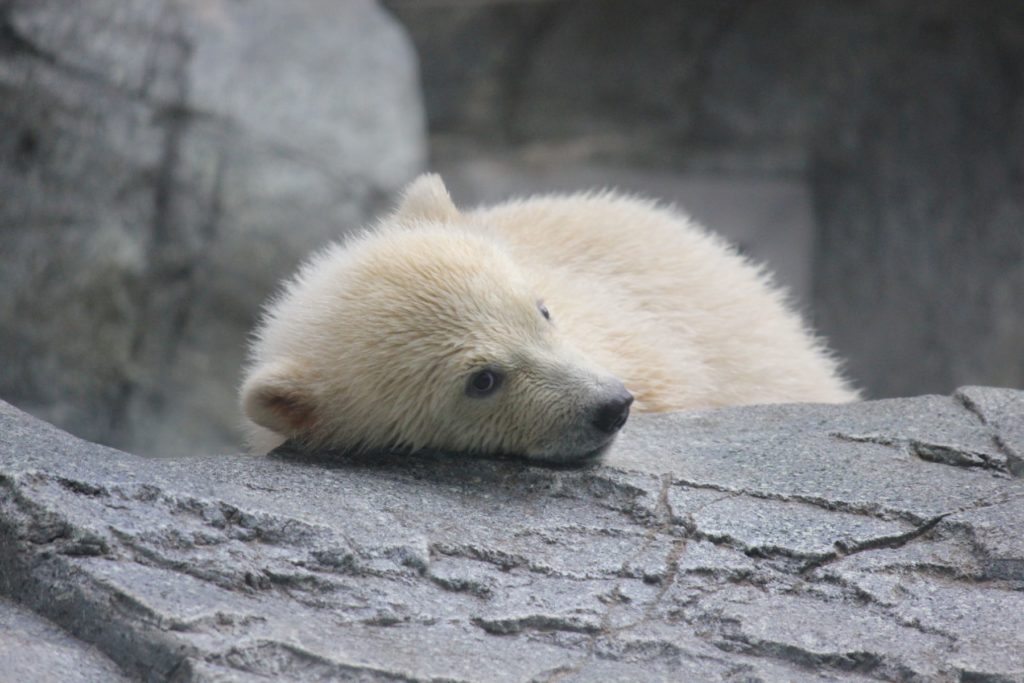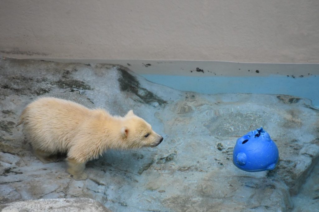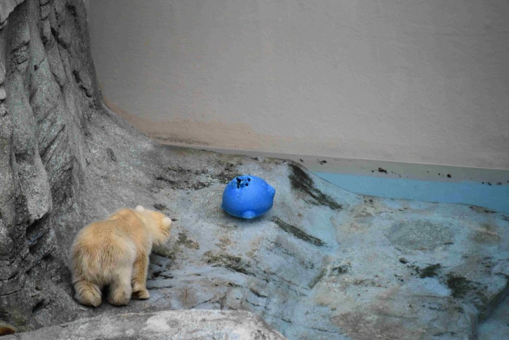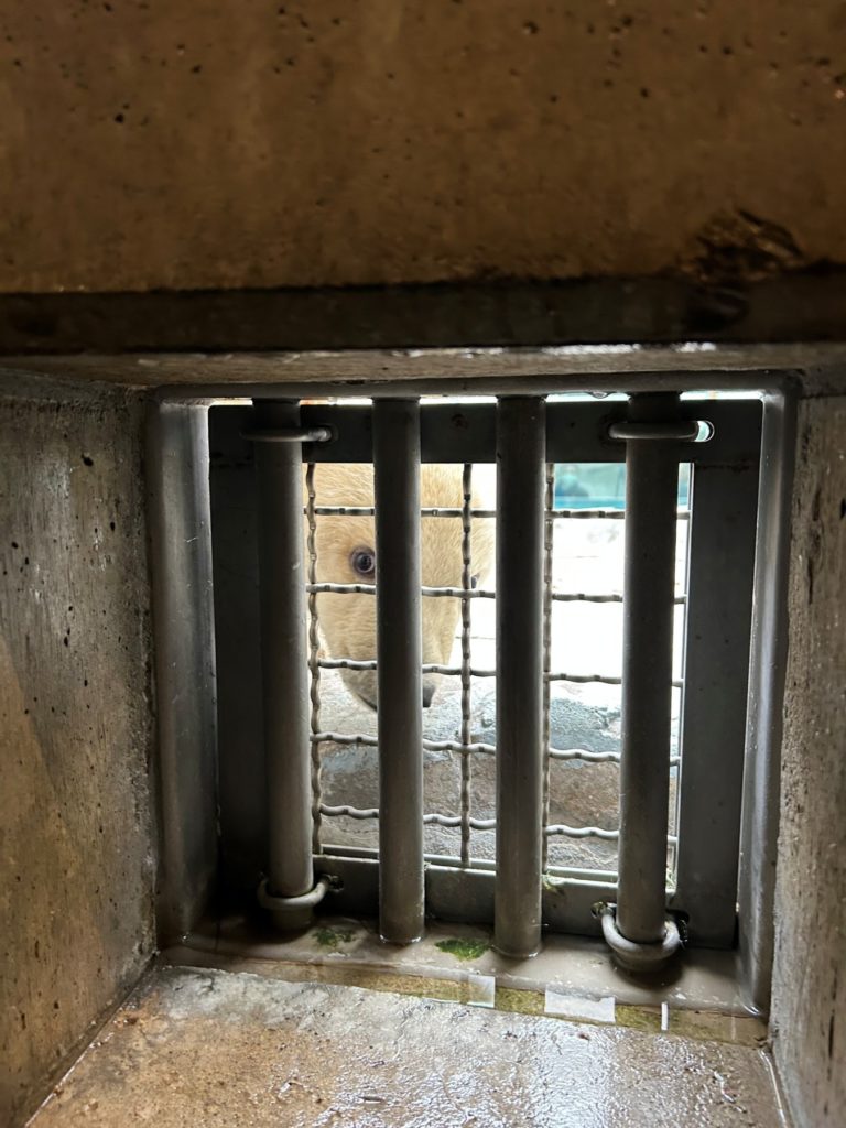 ホッキョクグマモモ親子の展示場の前にはおだやかな雰囲気が