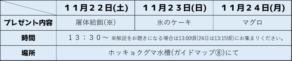 2頭の誕生日を記念し、11月22日(土)・23日(日)・24日(月・休)の3日間は誕生日イベントを開催します🐻❄️🎂